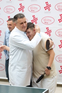 „Svaki dan imamo čime da se ponosimo i pokažemo nešto dobro. Danas pokazujemo naš humani odnos prema osobama sa invaliditetom. Kada je naš ‘zlatni dječak’ Haris došao prije skoro dvije godine, postao je dio naše velike porodice i od tada mu dajemo vjetar u leđa u svemu što radi. On je radnik za ponos, njegov odnos prema pacijentima i kolegama primjer je svima nama. Nastavićemo da pružamo prilike mladima — do sada smo zaposlili više od 350 ljekara i preko 1.000 medicinskih sestara i drugog osoblja. Haris je vrhunski sportista, a danas sam se potrudio da mu budem barem dostojan sparing partner pred odlazak na nove turnire. Bićemo mu podrška i kao kolegi i kao sportisti pred kojim je sjajna budućnost.“